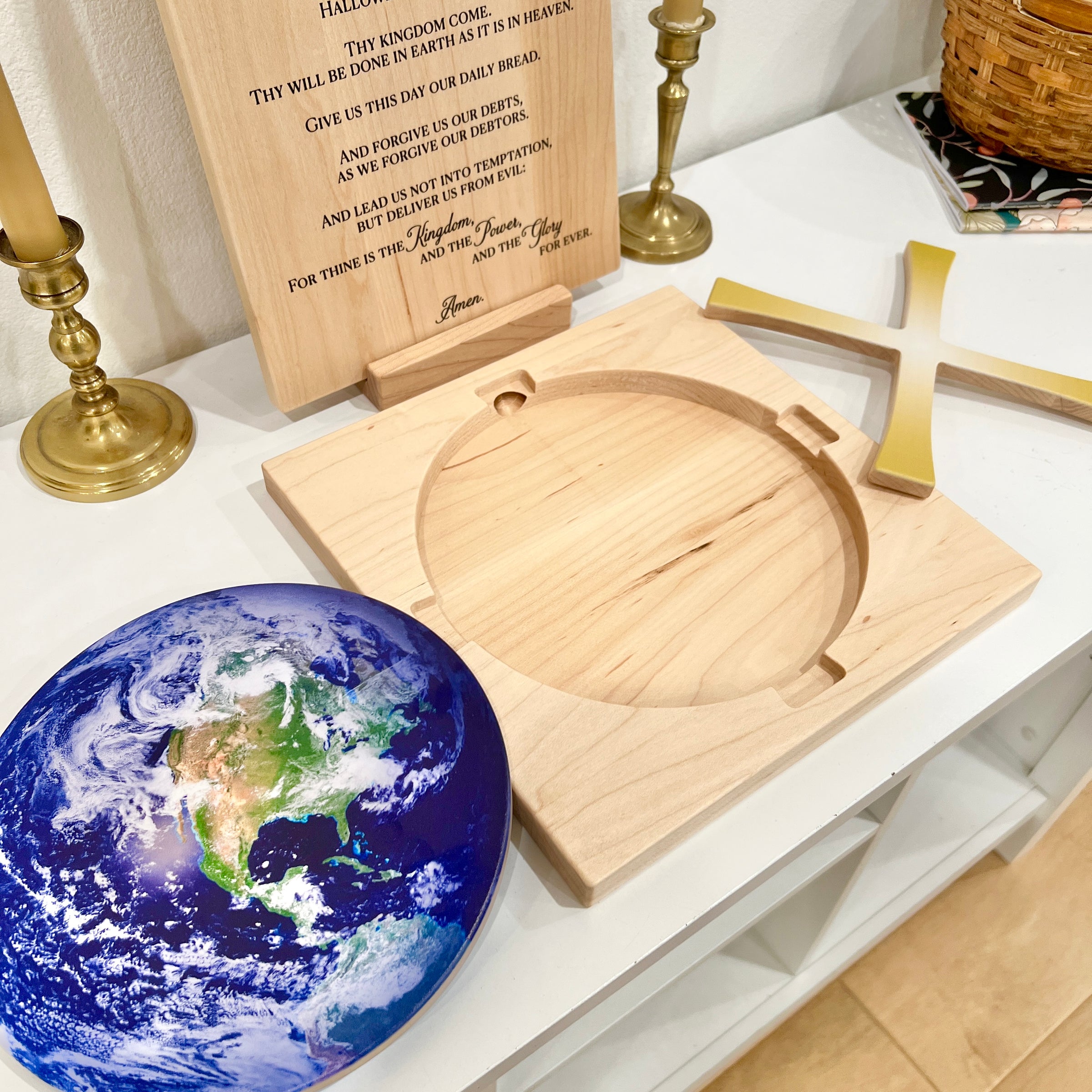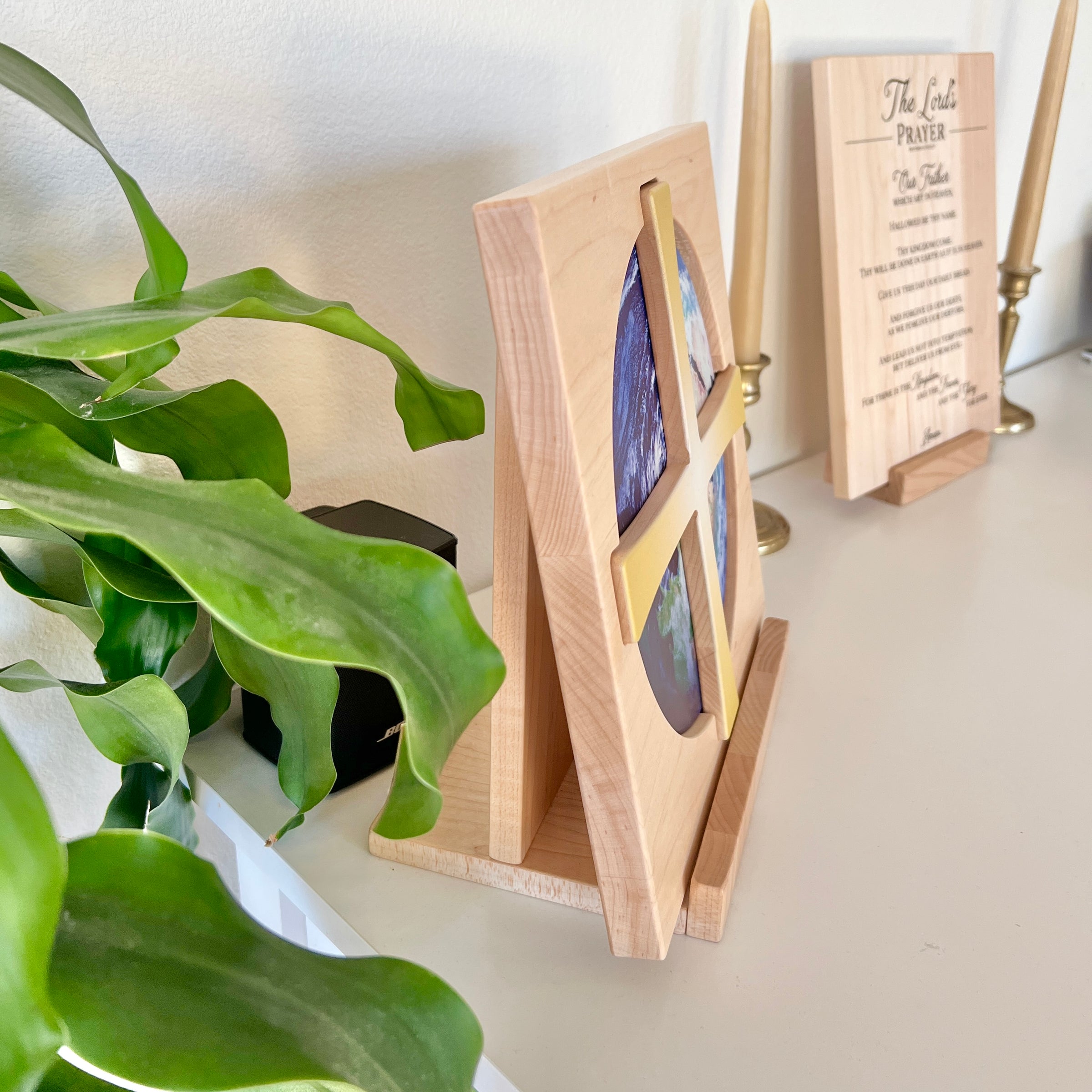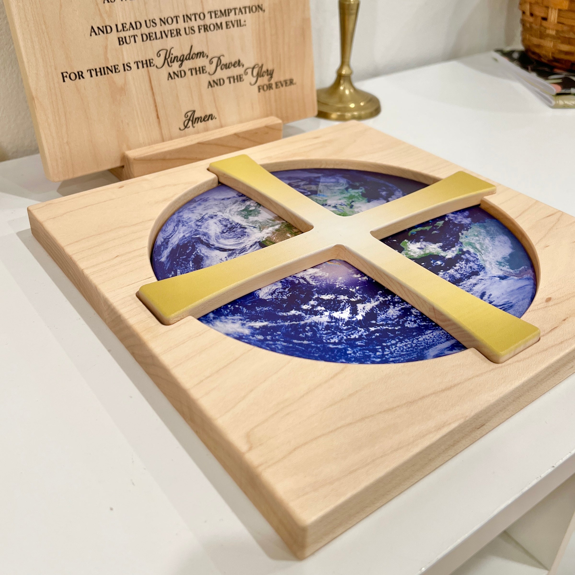This Cosmic Cross Puzzle nestles a cross over the earth as representation of the unification of Heaven and Earth as well as all of creation. It can be displayed upright in one of our Large Display Stands (sold separately).