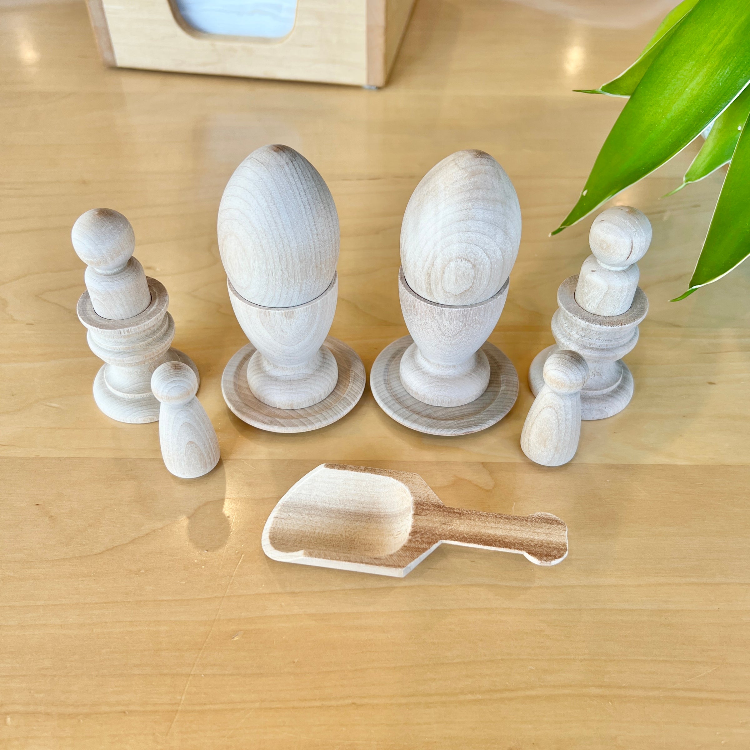 This set of wooden pieces are all lightly sanded but ready for some finish-work. You can play with them as is or give them a bit more DIY with sanding, painting, and polishing.