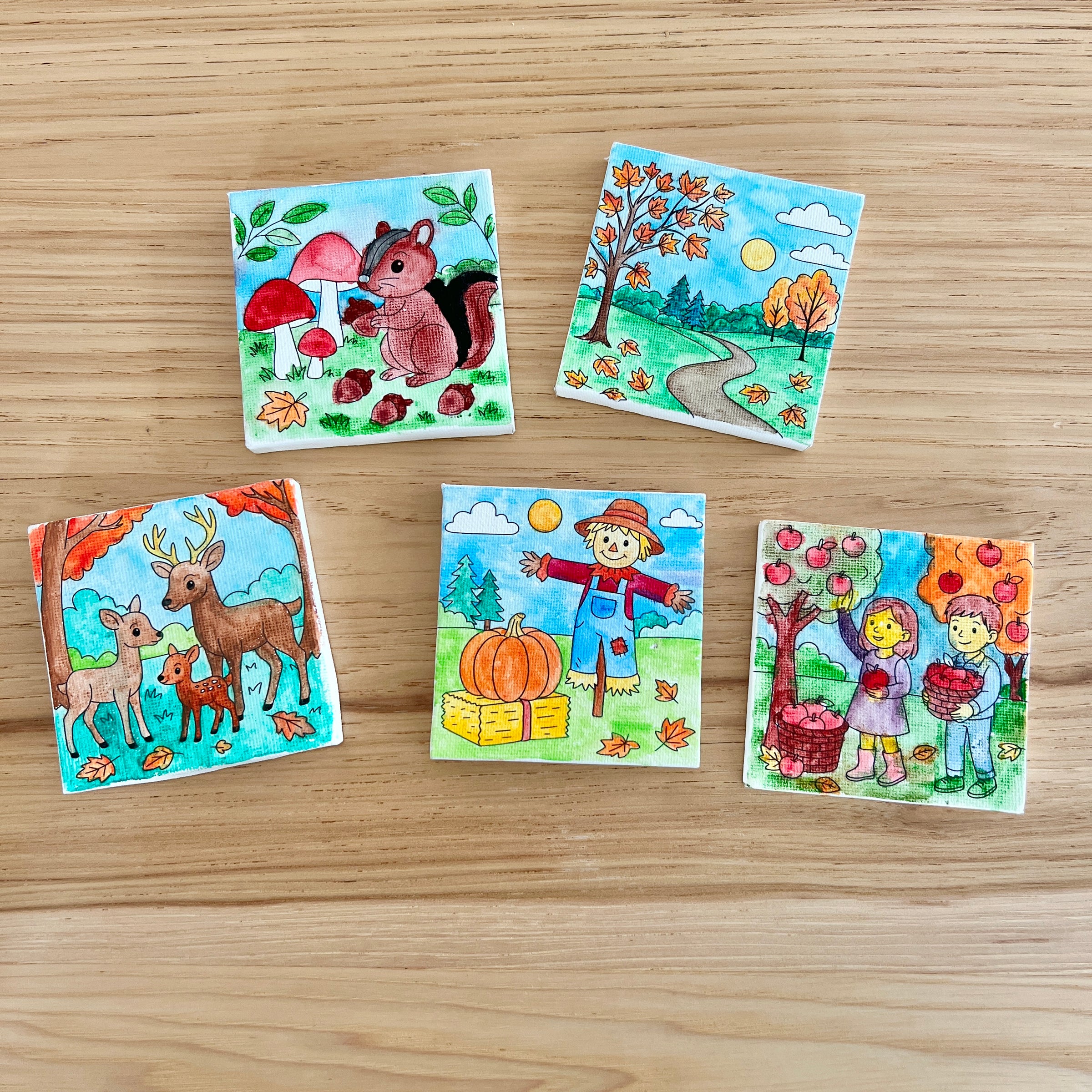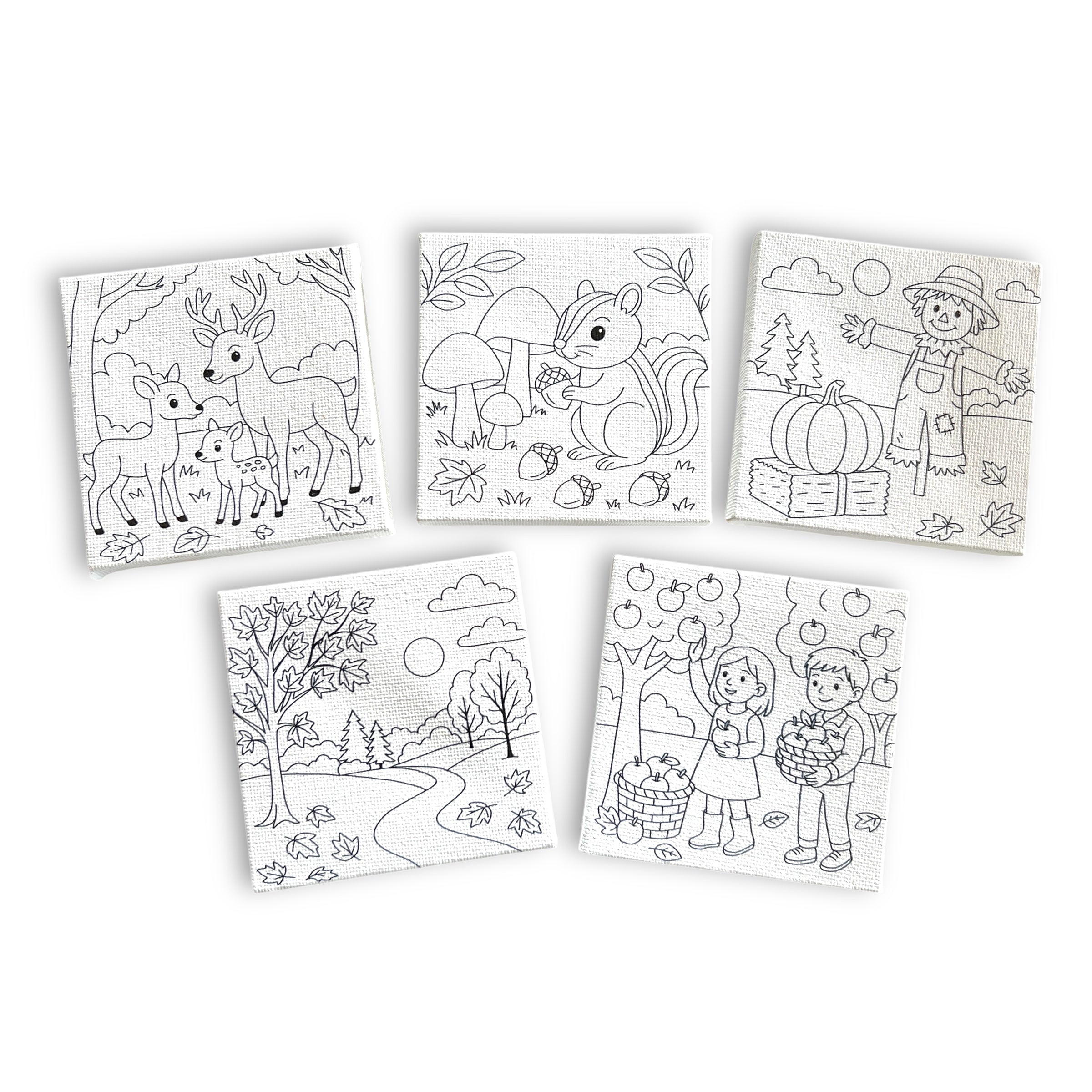 These cute little canvases are 3 inches square with adorable pictures ready for painting. These are a display-worthy craft that children and adults enjoy.