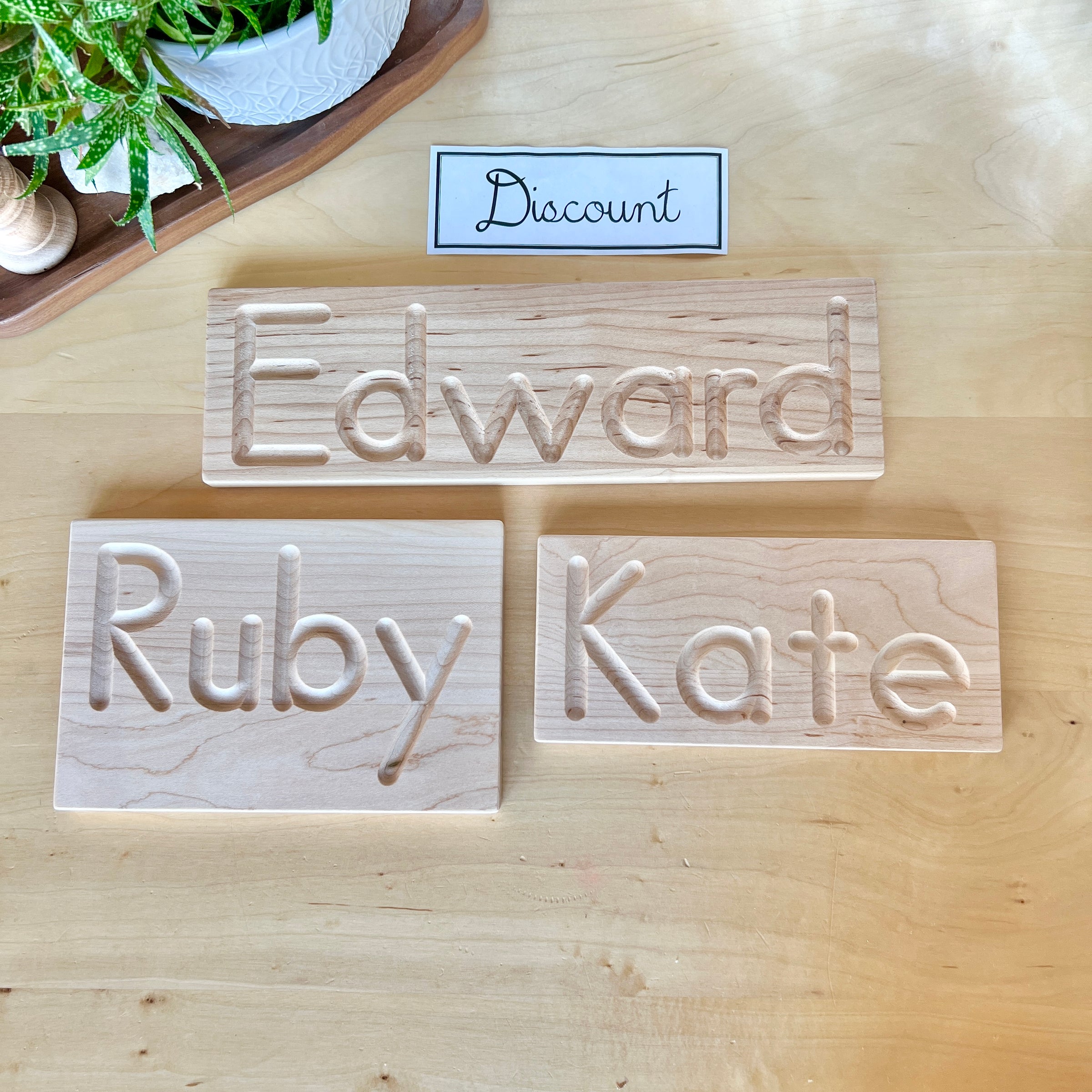 These simple, smooth grooves create a path your child can follow with their finger or tracing stick, helping feel the movement of each letter and learn how to write and spell their name.